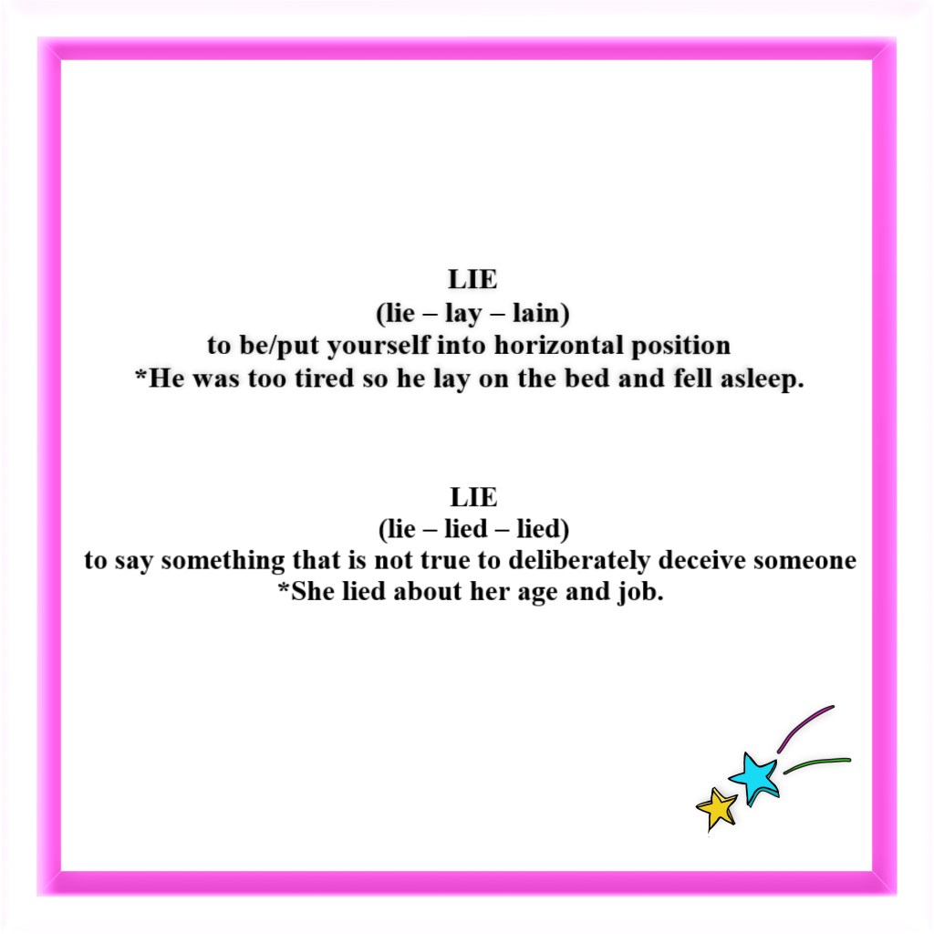 lie (lied/lied) – to say something that is not true to deliberately deceive someone